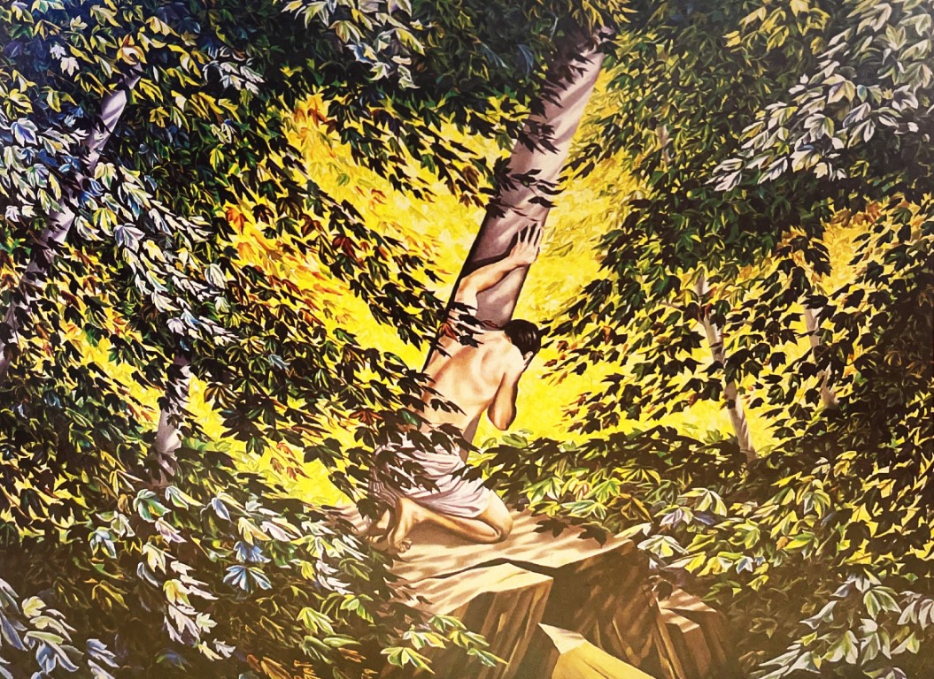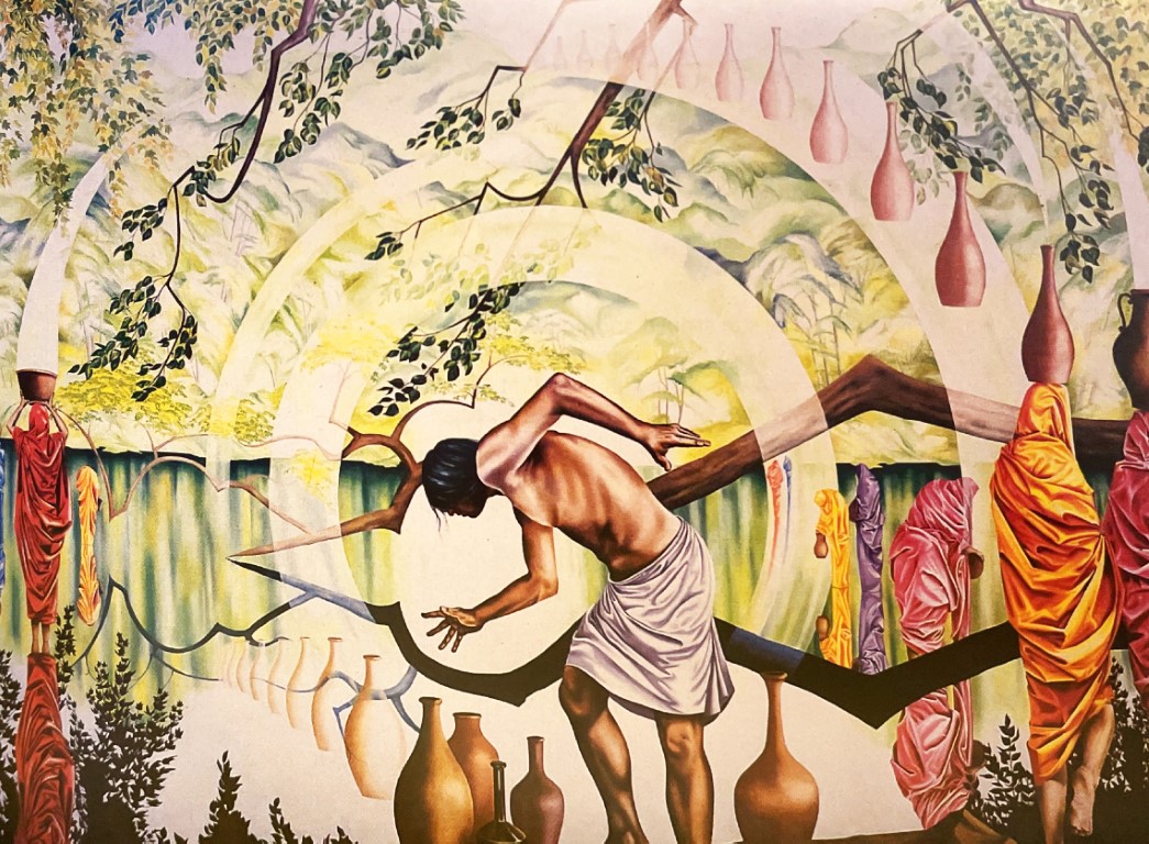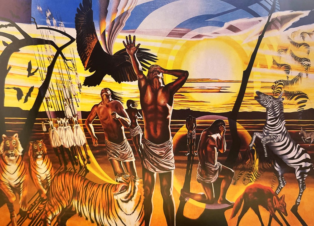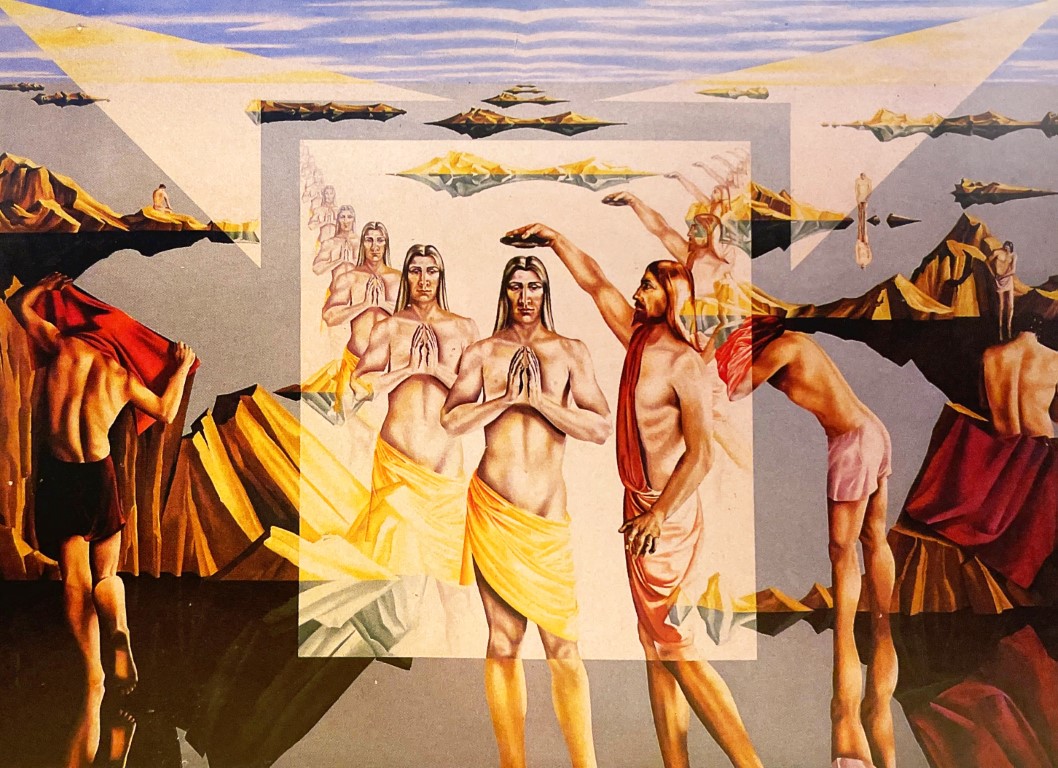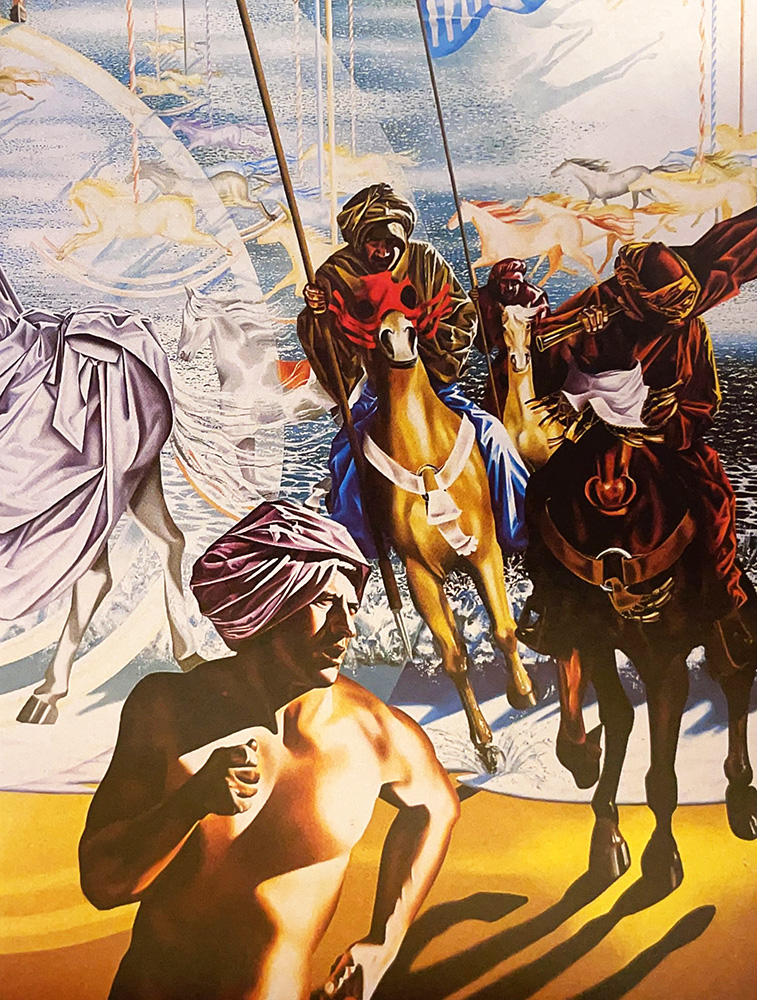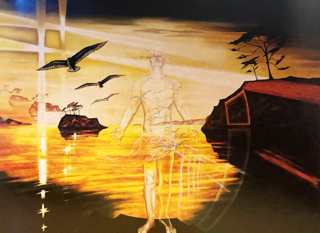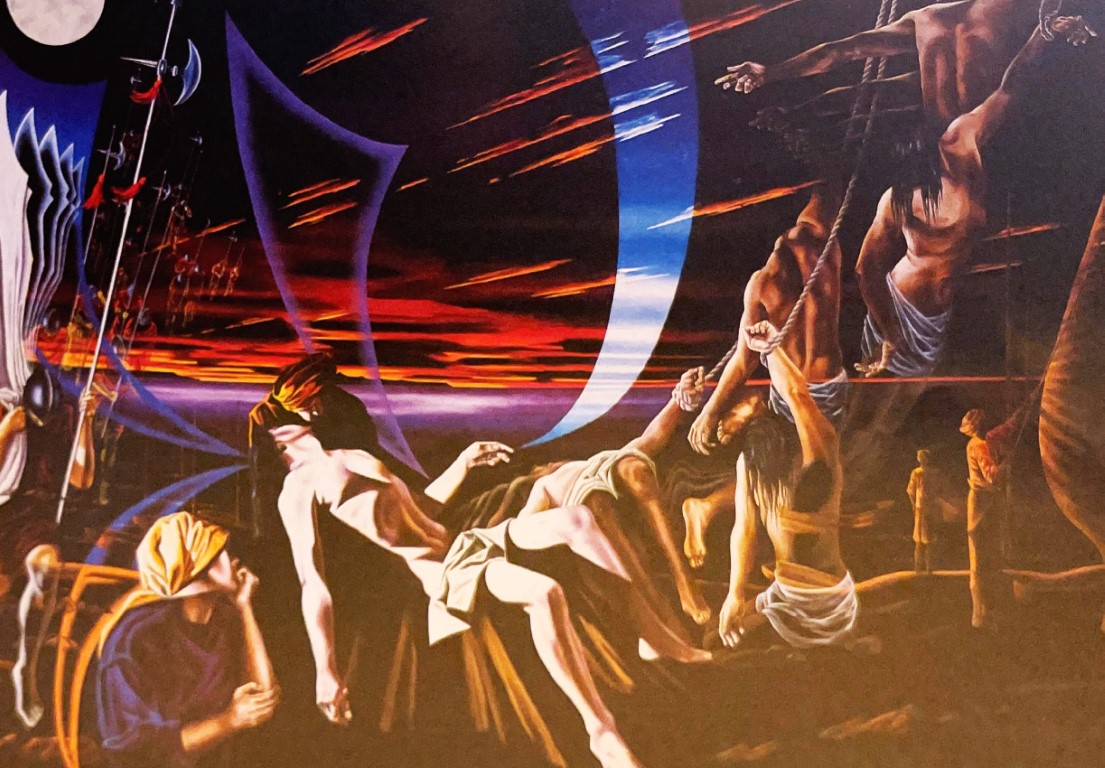 Here is something profound, strong and delicate. Here are paintings and works in dialogue and counterpoint. The paintings in their original are enormous, as if only such huge and generous scale could accommodate and express the themes which are their subjects.